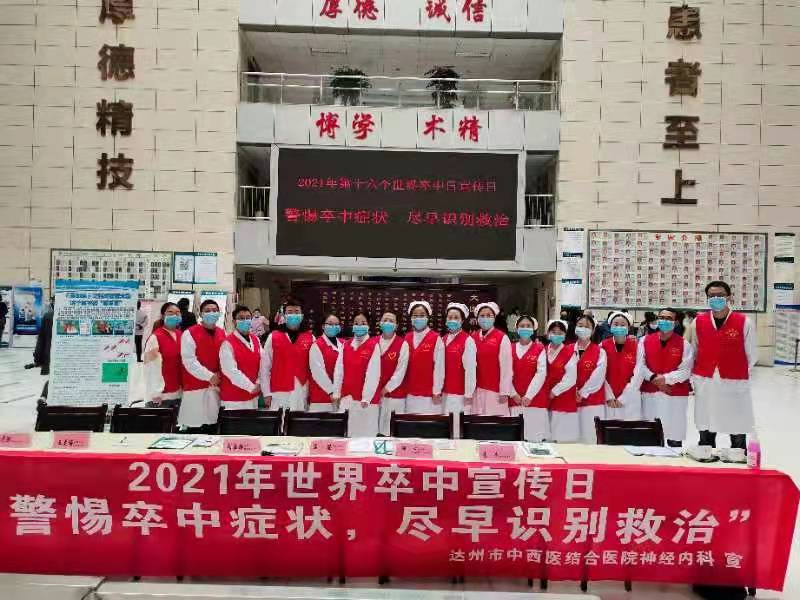 10月29日,為深入開展黨史學(xué)習(xí)教育,積極推進(jìn)“我為群眾辦實(shí)事”實(shí)踐活動(dòng),達(dá)州市中西醫(yī)結(jié)合醫(yī)院神經(jīng)內(nèi)科黨支部在門診一樓大廳開展以“警惕卒中癥狀,盡早識(shí)別救治”為主題、“分秒‘B’爭(zhēng),救治大腦”為活動(dòng)口號(hào)的“世界卒中日”健康科普志愿義診活動(dòng)。