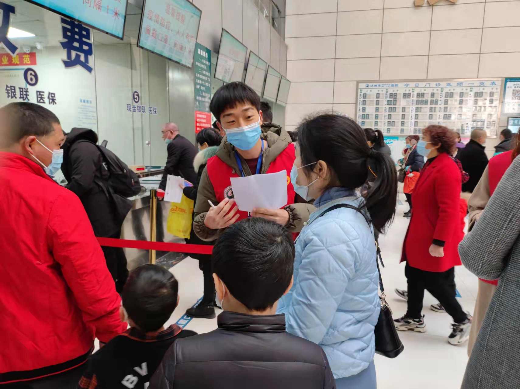 青年志愿者們?yōu)閬?lái)院就診患者提供導(dǎo)診服務(wù),協(xié)助維持預(yù)檢分診處就診秩序,幫助患者掛號(hào)、繳費(fèi)、打印檢查報(bào)告單等服務(wù),同時(shí)征集了患者就醫(yī)體驗(yàn),來(lái)院患者在團(tuán)員青年們熱情、耐心、周到的服務(wù)中,解決了就診過(guò)程中遇到的問(wèn)題。